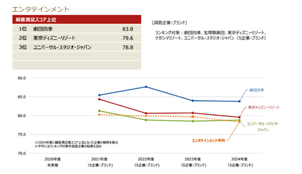実際、日本生産性本部による顧客満足度調査において、ミュージカルの劇団四季やUSJと比較すると、満足度スコアは2倍近く落ちており、満足度の低下が数値としても表れています。