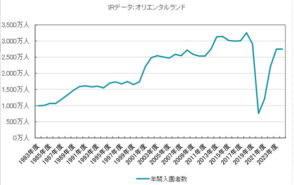 しかし、新型コロナの影響で入園者数は一気に落ち込み、収束後のここ数年は年間2700万人前後と、コロナ前よりも1割ほど少ない水準にとどまっています。