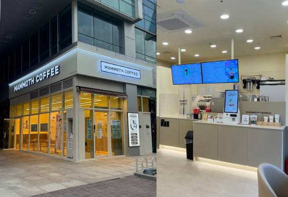 マンモスコーヒーは、韓国で2012年に創業した。当初は一般的なカフェ形態でスタートしたが、2016年以降、テークアウト特化の小型店「Mammoth Express(マンモス エクスプレス)」に事業モデルを転換。従来型の「マンモスコーヒー」と小型店の「マンモス エクスプレス」の2形態があるが、約900店舗のうち、ほとんどがエクスプレスだという。