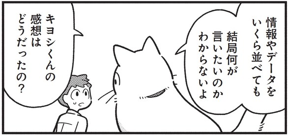 会社員の経験もある清水さんならではの分かりやすい内容。読んで面白く、ねこのイラストに癒されるだけでなく、主人公のキヨシと、猫一先生のやりとりを見ているだけで、上手に話すポイントがつかめます。
