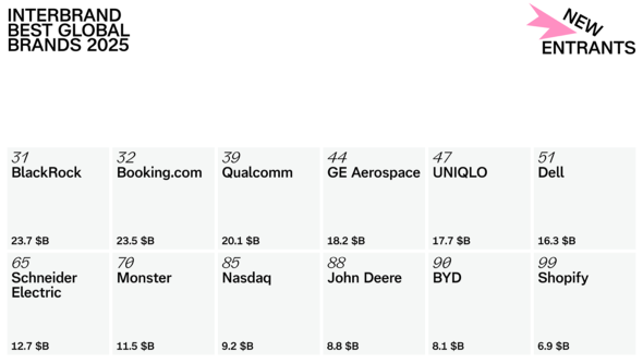 本ランキングの概況として、インターブランドジャパンは「2025年のブランドランキングにランクインしたブランドの価値総額は3.6兆ドルに達し、2024年の3.4兆ドルから4.4%増加した。その他、急上昇したブランドや新規参入した12ブランド、大幅に下落したブランドなど変動も見られた」とコメントしている。