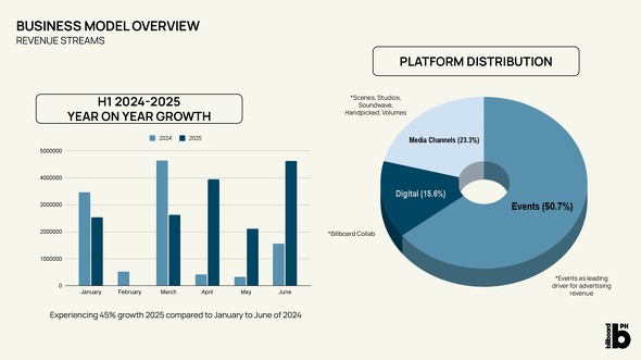 収益構造の変化についても「2023年のローンチ以降、ビルボード・フィリピンは45%の成長を遂げました。2025年からは収益の重心がイベントとスポンサーシップに移り、広告事業におけるイベントの割合はすでに50%に達しています」と話す。