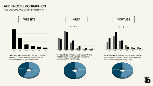 オーディエンス分析では「われわれの強固な基盤はZ世代(1990年代後半から2010年代初頭に生まれた世代)や若いプロフェッショナルといったデジタルネイティブ層です。フィリピン国内が主軸ですが、米国、カナダ、UAE、日本からのアクセスも増えています」と説明。さらに「ファンコミュニティの結束はデジタル上で一層強まり、国境を越えたエンゲージメントにつながっています」と強調した。