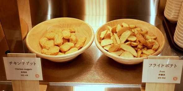 サラダバーでは、外国人観光客が好むフライドポテトとチキンナゲットを同店限定で提供。アジア圏の顧客の味覚に合わせ、薬味BARには辛味や香味が強いサーチャージャンや塩だれ、フライドオニオンを追加した。