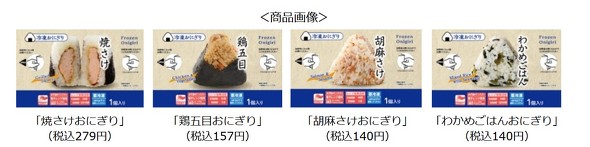 現在のラインアップは、工場で製造したおにぎりを冷凍した「焼さけおにぎり」(279円)、「鶏五目おにぎり」(157円)、「胡麻さけおにぎり」(140円)、「わかめごはんおにぎり」(140円)の4品。