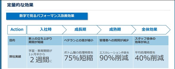 新人教育1カ月半→2週間に、センター全体の処理時間は40%削減
