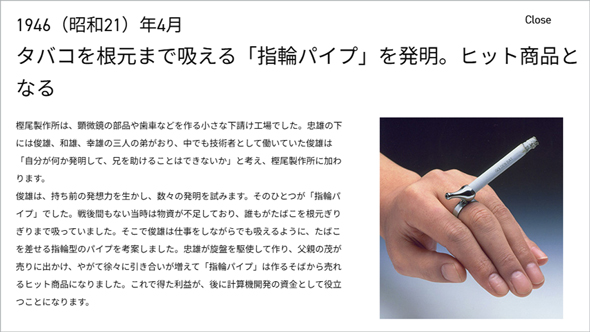 カシオ計算機が指輪型の商品を手掛けるのは、実は今回が初めてではない。原点は1946年、同社の前身である樫尾製作所が、タバコを根元まで吸えるアイデア商品「指輪パイプ」を発売し、大ヒットした。それをきっかけに、同社は資金を得て成長したという背景がある。