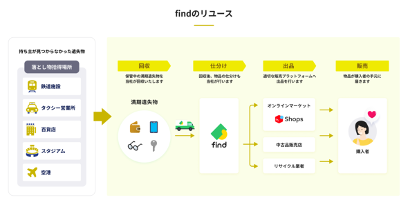 落とし物市場で存在感を強め始めているfindだが、落とし主に落とし物を返すこと以外にも、面白い取り組みをしている。それが2月に実証実験を実施し、9月から開始した「findリユース」というサービスだ。