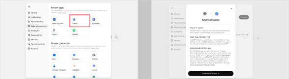 全ての言語切り替えが完了したら、ChatGPTの設定からChatGPTとCanvaの連携を有効にしよう。