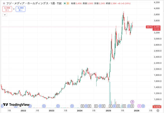 これは、同社が保有する豊富な不動産や有価証券といった資産価値が、本業の放送事業の停滞懸念から株価に全く反映されていないことを示していた。この状況に対し、アクティビスト(物言う株主)が経営改善や株主還元を要求。さらに、割安さの是正期待から買いが集まる展開となった。不祥事発覚がきっかけで、同社の株価は2倍になったのだ。