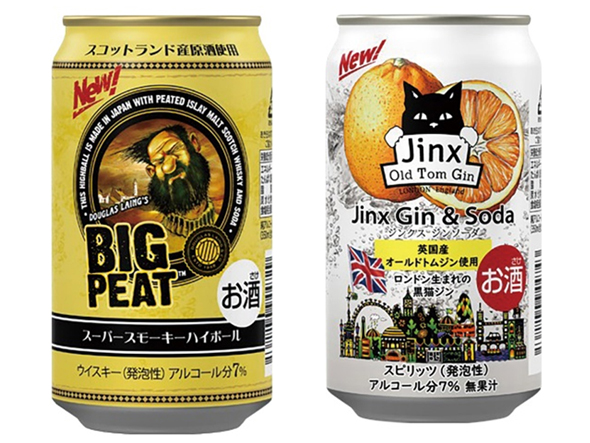 2025年8月には、スコットランド産ブレンデッドモルトウイスキー「ビッグピート」を使用したハイボール缶「ビッグピート スーパースモーキーハイボール」(350ml、438円)と、英国産オールドトムジン「ジンクスオールドトムジン」を使った「ジンクス ジンソーダ」(350ml、220円)の2品を、いずれもローソン限定で発売した。