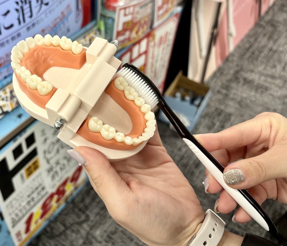 開発背景について担当者は「韓国の女性の間で、時短のために大きな歯ブラシが人気」と説明する。歯磨き粉や歯ブラシなどを展開する韓国ブランド「EUTHYMOL」(ユーシモール)の美白歯磨き粉の売り上げが好調なことに加え、同ブランドが大きめの歯ブラシを展開している点に注目。ドン・キホーテも大きな歯ブラシの開発に踏み切った。