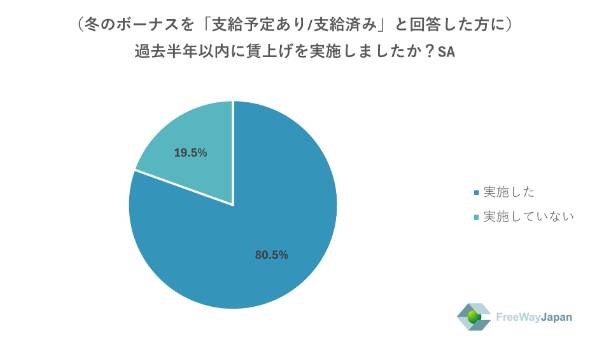 また、冬のボーナスを「支給予定あり・支給済み」のうち、賃上げを「実施した」が80.5%、「実施していない」が19.5%となった。