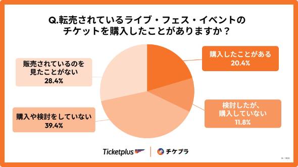 3人に1人が転売チケットに接触している――。電子チケット事業を展開するチケットプラス(東京都渋谷区)が、全国のライブ・フェス・イベントのチケット購入経験者1200人を対象に実施した「チケット不正転売に関する実態調査」で明らかになった。
