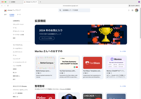 現在のAtlasブラウザは、Chromeウェブストアで公開されている拡張機能の多くを追加できる。右上のアカウントアイコン→「拡張機能」→「すべての拡張機能を管理」からストアを開くことが可能だ。追加した拡張機能はツールバーにピン留めして利用できる。