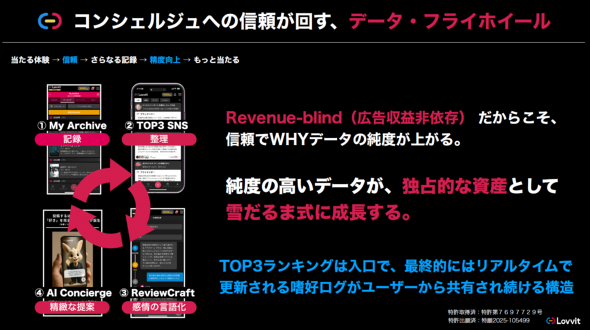 佐藤氏はLovvitを「人間の感情や価値観を解き明かす実験の場」と表現する。ITが得意とする論理と効率に偏るのではなく、エンタメの力を取り込み、人間の深層を理解するAIが生まれることで、新しいユーザー体験を創り出す。