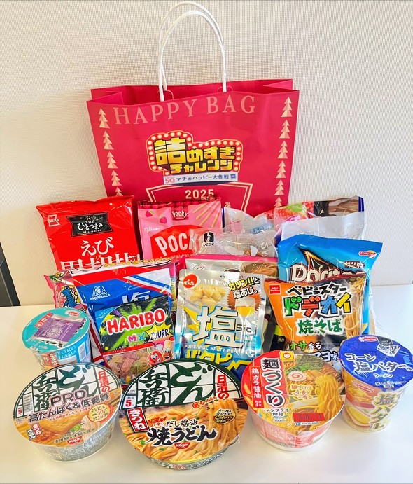 担当者によると、2024年に販売したお菓子などを詰め合わせた「創業祭福袋」が好評だったことを踏まえ、2025年は「詰めすぎチャレンジ」と題した福袋を企画。発売後はSNS上で「お得」といった声が広がり、1週間でほぼ完売したという。