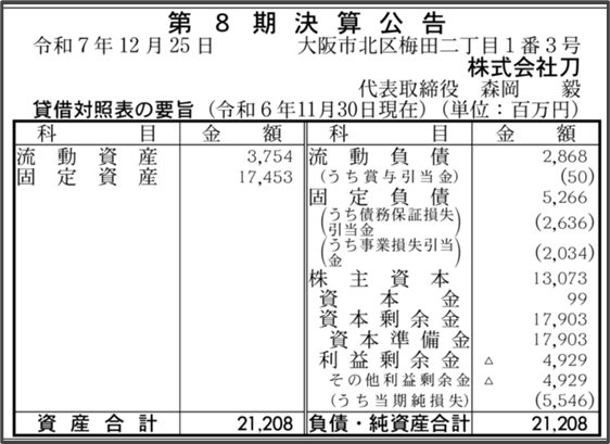 刀の財務状況を詳細に分析すると、その危機的な水準が鮮明になる。