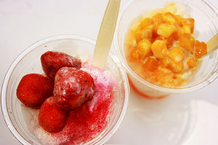 昨年人気だったのは、京都の老舗「祇園小石」の黒みつを使った「黒みつきなこ氷」や、マンゴー果肉をたっぷり載せた「マンゴー氷」、ナタデココ入りの「いちごミルク」などの珍しいかき氷。また、自分の好きなシロップをかけ放題の「オリジナルかき氷を作ろう」コーナーには長い行列ができていた。かき氷はいずれも格安、200〜300円で楽しめる。このほかステージでは「かき氷の早食い大会」も開かれるので、自信がある方は参加してみるのも良いかもしれない。