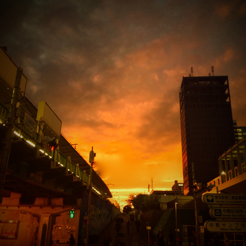 ときどき余計なところを触って失敗するけど、そういうときはiPhoneを左右に振ってやるといい。するとひとつ作業を取り消してくれる。で、あれこれ試行錯誤してみたけど、やっぱ難しいですな。がんばってこのくらいでした。一部不自然なところもありますがご容赦を。で、色をコテコテにして空もちょっと不気味な感じにして完了。