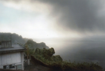 爆発音とともに巨大なキノコ雲のような噴煙が上がり、噴石が弧を描きながら落ちるのが見える。灰色の雲が空を覆い、集落に火山灰が降り始める。視界がぼやけていき、景色は灰色に塗り変わっていく。