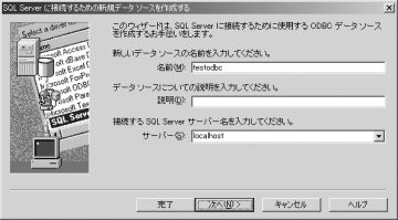 データソース名と接続するサーバ名を入力し、「次へ」をクリックします。