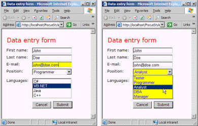 入力フォーカスを持つコントロールの背景(そして前景)色を変更するには、ちょっとしたJavaScriptや幾つかのCSSトリックなコードが必要だ。そうすることで、ユーザーは乱雑なフォームでも、迷わなくなる。