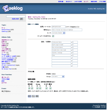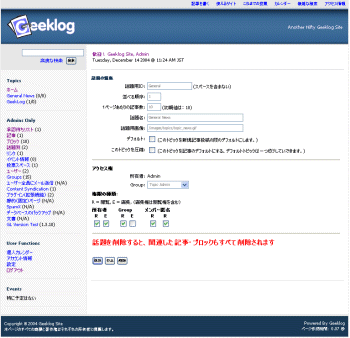 画面19■「新規話題」か、編集したい話題の名前をクリックすると、「話題の編集」が表示される。ここから話題の追加や編集・削除が可能だが、話題を削除した場合、関連した記事やブロックも全て削除されるので注意が必要