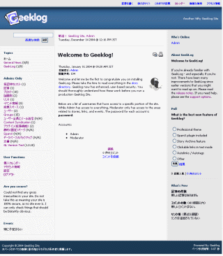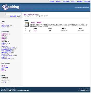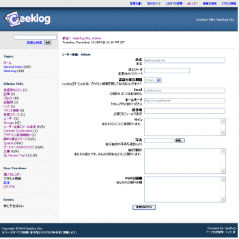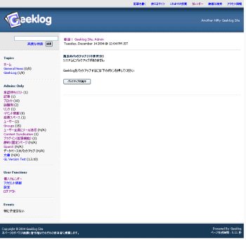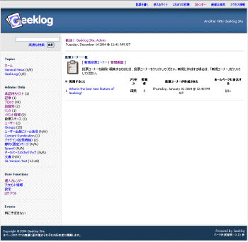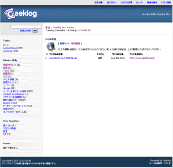 画面37■左メニュー「GL Version Test」をクリックすることで、最新版かどうかのチェックができる。「Your Geeklog installation is up-to-date.」と表示されれば最新版だCopyright © ITmedia, Inc. All Rights Reserved.