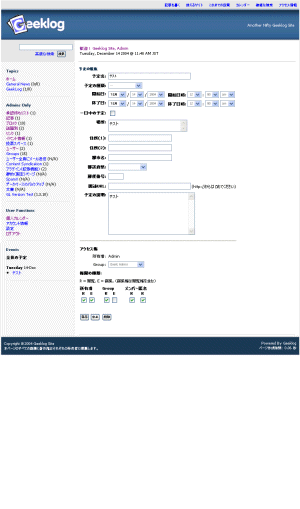 画面22■左メニューもしくは「投稿の管理」の「イベント情報」をクリックすると、「予定管理」が表示される。ここで設定した予定は、「Events」に表示されるのだ。「C」をクリックすると、予定のコピーも作成できるインポートするファイルは、タブ区切りで、氏名、ユーザー名、メールアドレスの順に並んでいる必要がある。なお、ユーザーのパスワードは無作為に決定されるので、必要な場合、インポート後に変更が必要だ。