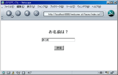 | 入力値を保持するコンポーネント | WelcomeForm.java(ActionForm) | WelcomeBean.java(BackingBean) |