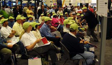 Novellのブースでは、多くのパートナーがそのブース内に入れ子となっており、今回のLinuxWorldで一番大きなブースとなっていた。期間中何度もプレゼンテーションが行われていたが、参加者は一様に緑色の「openSUSEハット」をかぶり、SUSEへの信仰心を表現しているかのようだった。