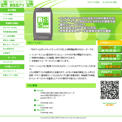 クエストコムは、ケータイ用のRSSリーダー「RSSアイ」を開発し、2006年2月1日にリリースすると発表。現在、α版を公開中。