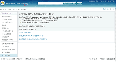 なお、作成したカスタムボタンをWindows Liveギャラリーに登録することもできる。登録するには、画面7において[このボタンをWindows Live Galleryで共有する]をクリックすればよい。