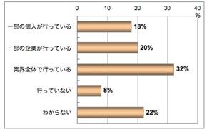 「特定の顧客だけに有利な情報を流すこと」について「業界全体で行っている」と考えている消費者は32%、「顧客に特定の銘柄を推奨して自社がもうけること」については36%となった。「行っていない」と答えたのは両項目ともわずか8%となった。
