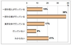 「証券会社のインサイダー取引への関与」について聞いたところ、約65%の消費者が何らかの形で「行っている」と回答した。「行っていない」と回答したのは10%とわずかだった。