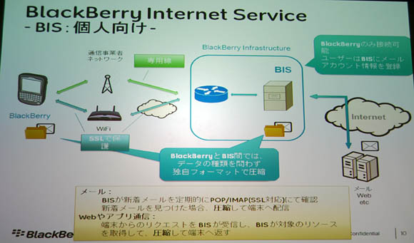 このためRIMでは、データの圧縮やトラフィックを最適化するBlackBerry Infrastructureを経由させる仕組みを導入した。データを保護する観点から圧縮と暗号化を同時に行うようにした。