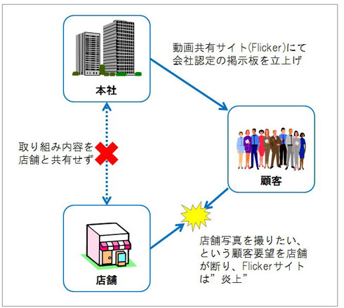 一方で失敗したと言われる事例を見ると、ソーシャルメディアでの取り組み内容が組織内で十分に共有されず、あらゆる企業活動に対するリアクションやレスポンスとして、ソーシャルメディアを通じた非難の声が浴びせられ、Webサイトが炎上する事態に至るものすらある(図3参照)。つまり、企業の一挙手一投足がソーシャルメディアを用いて話題になる可能性があるのだ。企業は縦割り的にメディアやチャネル、活動を捉えるのではなく、総合的に市場と向き合わなければならないのである。それができなければソーシャルメディアの餌食になるだけだ。