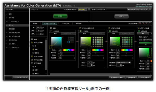 日立製作所は7月23日、CSS(Cascading Style Sheets)の追加仕様となるCSS Level 3(CSS3)に対応した「画面の色作成支援ツール」をWebサイトで無償公開した。日立のデザイン本部と日立公共システムエンジニアリングの共同研究により開発したもので、公開期間は2013年7月19日までとなる。