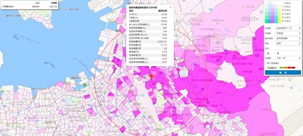 西川氏: 既存店の収益性もそうですが、それ以上にどこに新しい店舗を作るのかが重要です。当社では、WebGIS(地理情報システム)を使って出店の最適地を探していますが、WebGISに国勢調査のデータ、消費データ、交通量データを重ね合わせて最適な出店地を導いています。今後はモバイル空間統計なども使っていきたいですね。