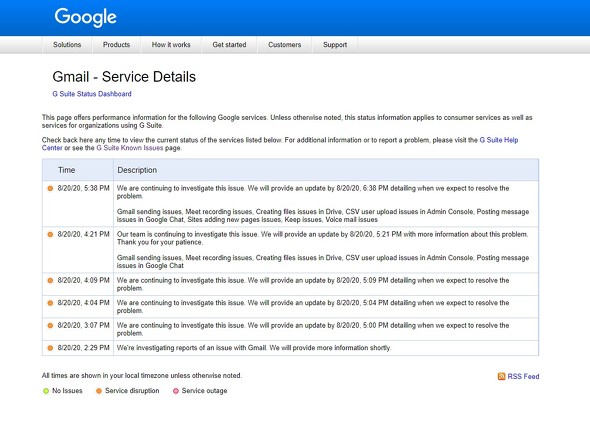2020年8月20日午後、Googleの「Gmail」などのサービスで障害が発生している。