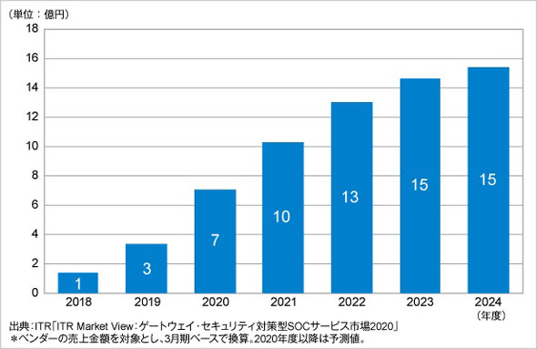 ITRの調査によれば、国内におけるCASB運用監視サービス市場の2019年の売上金額は3億4000万円で、2023年までには約5倍に膨らむ見込みだ。