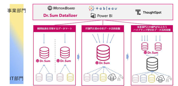 情報システム部門にとっては、管理性の高さも大きな魅力だろう。Dr.Sumはデータマートの作成や日頃の運用管理などの全作業が簡略化されており、データエンジニアではない事業部門ユーザーでも行える。これらの業務をユーザーに開放して、情報システム部門の負担を減らしながらデータの民主化を推進していくのに最適な基盤だ。
