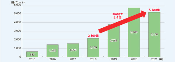 総務省の統計によれば、サイバー攻撃関連の通信数がここ3年間で2.4倍にも増加しています。ここから推測できる動向には、直接的にダメージを与える意図を持ったものはもちろん、アタックサーフェスを探索して侵入可能かどうかを試みる通信も含まれることが予想できます。近年のランサムウェアビジネスの増加や、地政学リスクの高まりからこのようなリスクは高まり続けるとみられています。