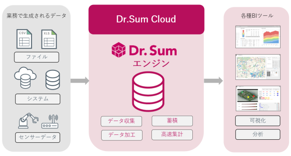 田崎氏 DXを阻む壁が生まれる原因の一つには、データ取得や加工プロセスの複雑さに原因があると考えています。マスクドさんがおっしゃる必殺技を実現するには、データの収集や事前加工、蓄積、集計をエンドユーザーの近くで実現する当社のデータ基盤ソリューション「Dr.Sum Cloud」が役立つでしょう。Dr.Sum Cloudは取得したデータを誰でもプログラミングをせずに、バラバラのデータを一つにまとめて簡単にアクセスできる「データマート化」して一元管理できることから、データ活用における人や組織、技術の壁が生じにくい仕組みだと言えます。Dr.Sum Cloudとご利用中のBIツールを組み合わせることで、共有や共創につながります。