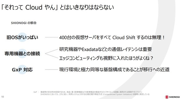 もともと塩野義がAWSユーザーだったこともあるが、西村氏は「いずれマルチクラウドの時代になる」という想定を持っている。クラウドのベンダーにこだわりはなかった」と話す。