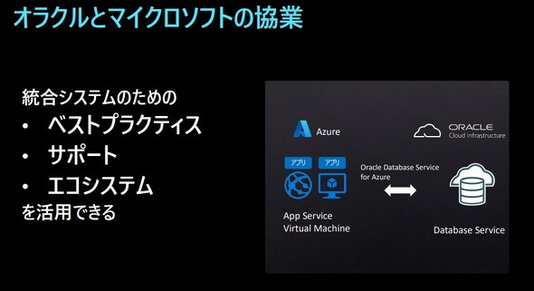 今回の協業によって、例えばOracleが提供するデータベースにAzure上のSaaSやPaaSといったアプリケーションからシームレスにアクセスできるようになる。岡嵜氏は「クラウド移行はもちろん、ユーザーのデータ活用がスピーディーになることは間違いないでしょう」と話す。