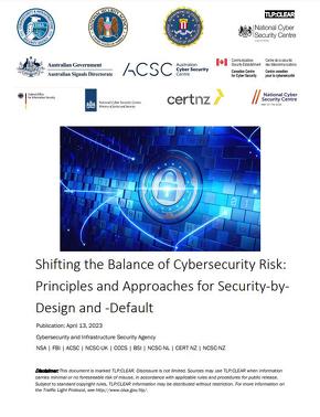 CISAが公表したセキュアバイデザインのガイドライン「Shifting the Balance of Cybersecurity Risk:Principles and Approaches for Security-byDesign and -Default」(出典:CISAの公開資料)当局の担当者は、コードの欠陥を最小限に抑え、多要素認証を標準的なセキュリティ機能とし、悪意のある攻撃のリスクを減らすために他の手段を講じるよう、全世界のソフトウェア産業に大規模な変更を促している。