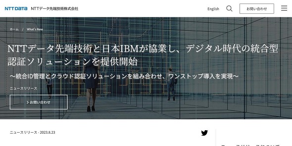 エヌ・ティ・ティ・データ先端技術(以降、NTTデータ先端技術)と日本アイ・ビー・エム(以降、日本IBM)は2023年8月23日、NTTデータ先端技術のID管理ソリューションと日本IBMの認証ソリューションを組み合わせた統合ID管理と認証サービスを備えた認証基盤ソリューションの提供を開始した。