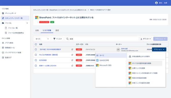 File DLPを使えば、IT部門などの管理者が共有設定を直接変更できるため、企業全体を考えたセキュリティを強化できる。“公開から何日間経過すると公開を停止する”といったルールを作って自動的に適用できるため、共有設定の抜け漏れを防げる。